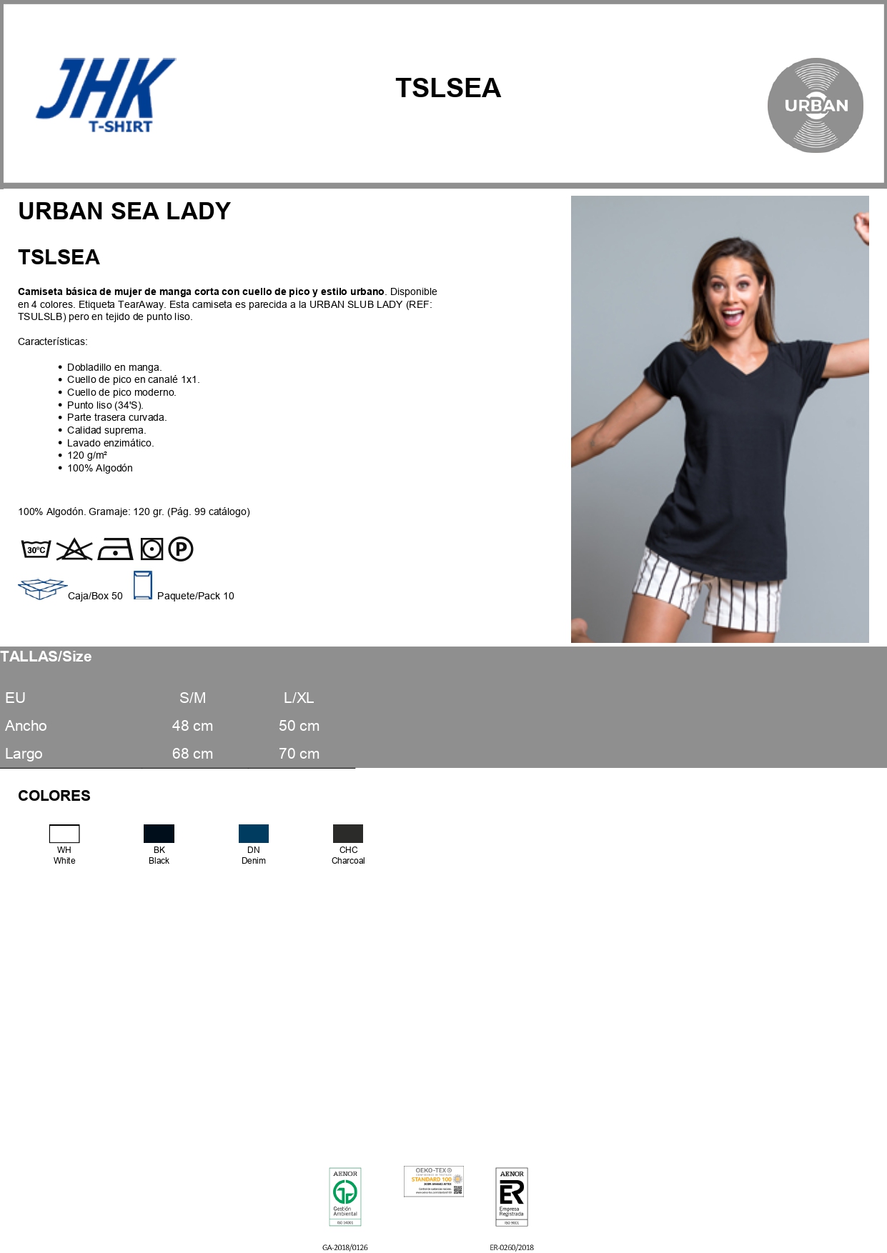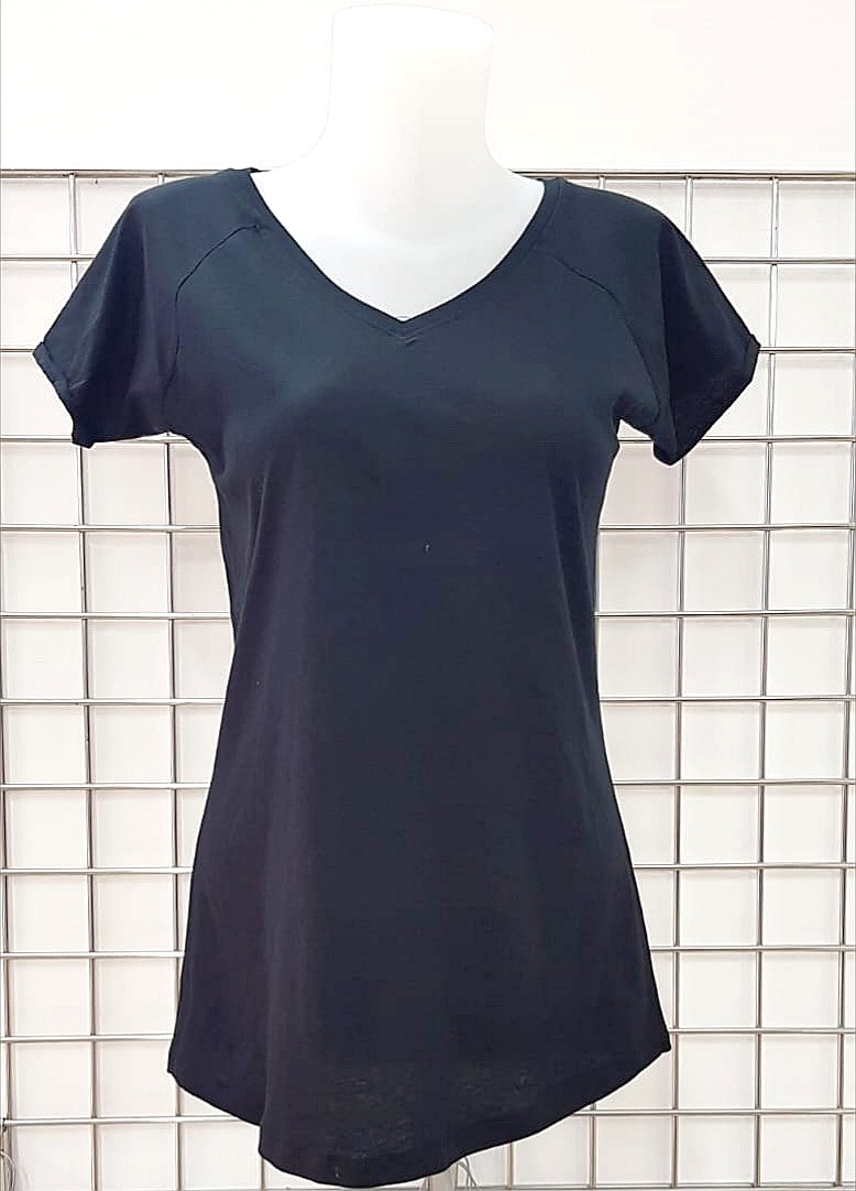 Camiseta básica de mujer de manga corta con cuello de pico y estilo urbano. Disponible en 4 colores. Etiqueta TearAway. Esta camiseta es parecida a la URBAN SLUB LADY (REF: TSULSLB) pero en tejido de punto liso.