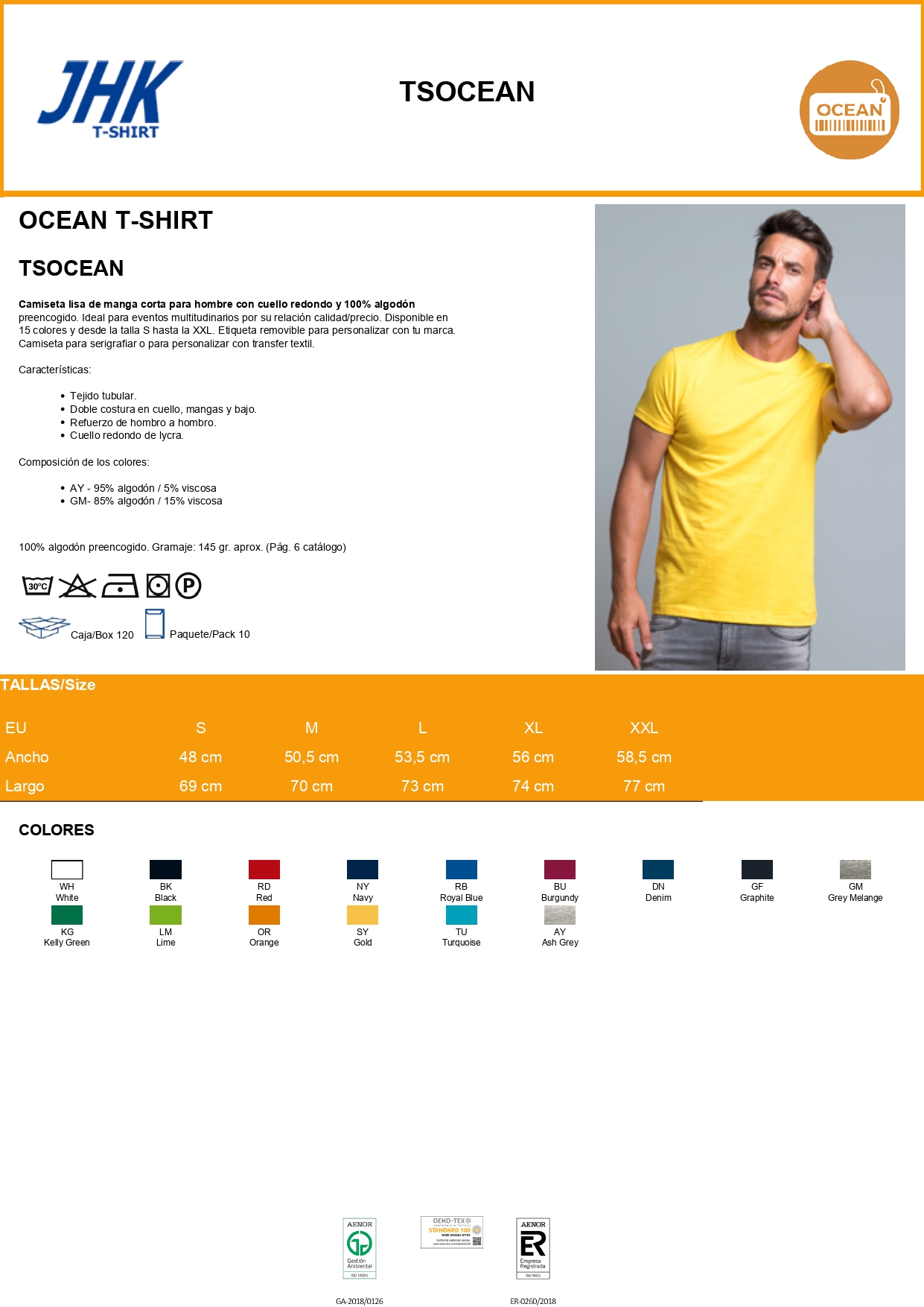 100% algodón preencogido.